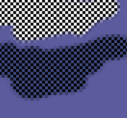 ↑黒と透明の市松模様を乗せた様子。元の色が白い部分が暗くなってしまっている。
