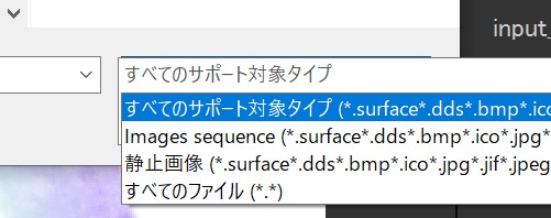 この際ファイルのフィルタに ”すべてのファイル” を指定しないとなぜかpngとかjpgとかの画像が表示されないので、注意。おそらくバグ。