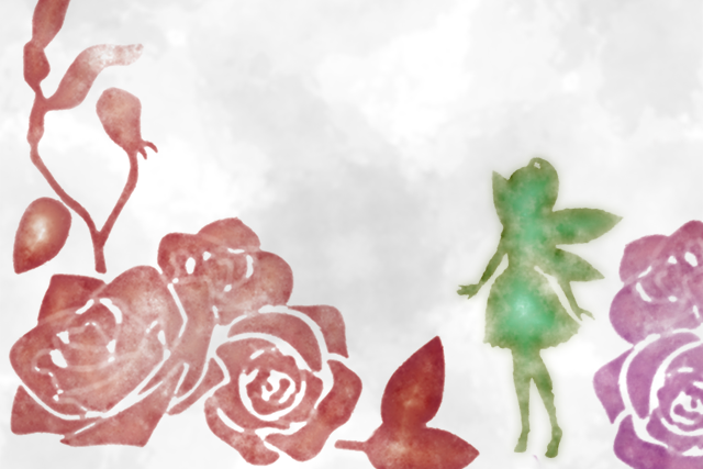 シルエットACという素材サイトから陽性とバラの素材を落としてきて、今回のツールで水彩画風に加工、PhotoShop上で合成している。この素材サイトには今後もお世話になりそうだ。