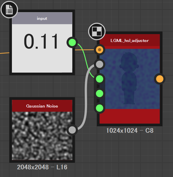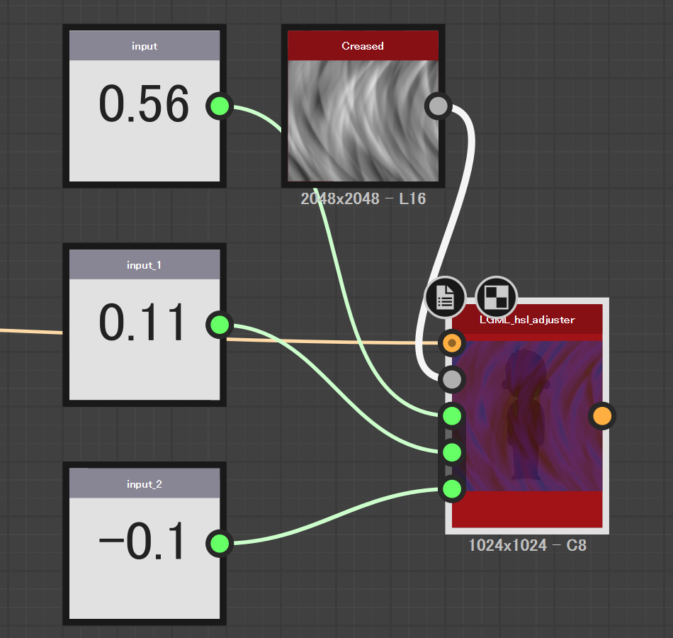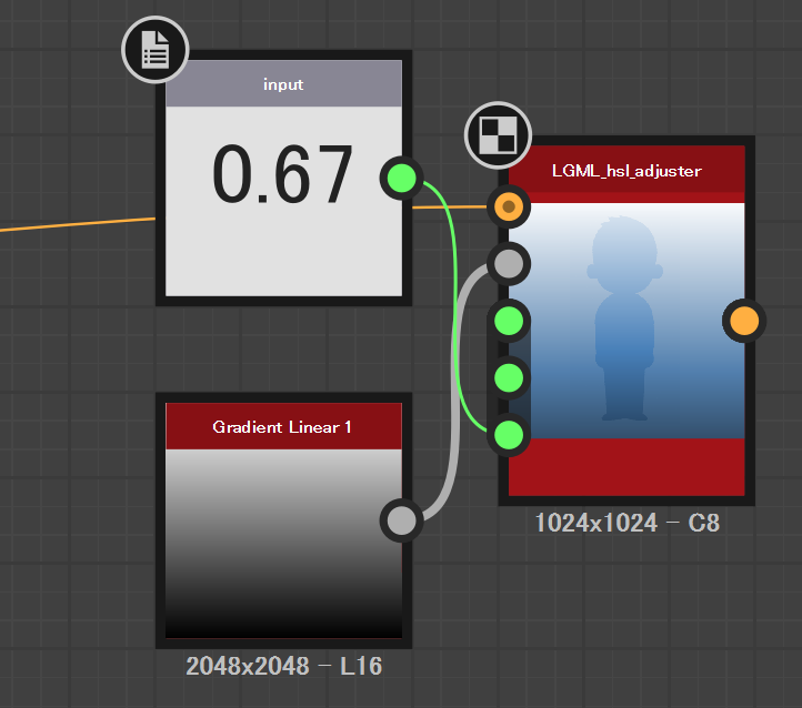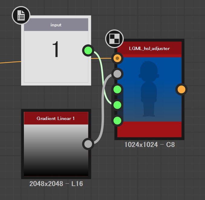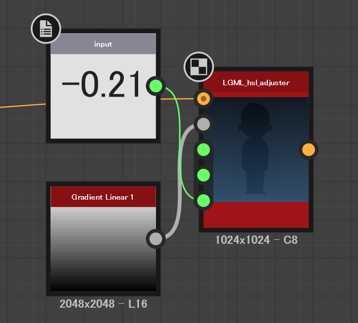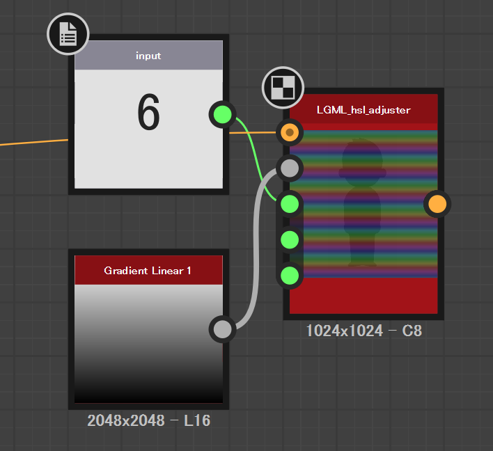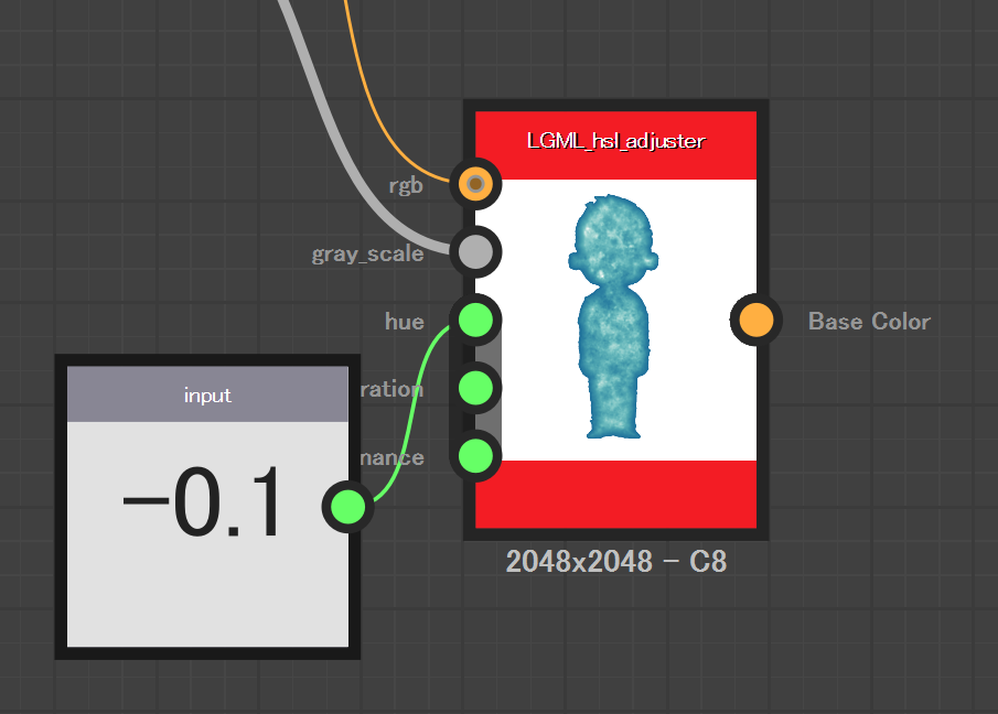 となる。色相・彩度・明度それぞれに個別のマップは適用できない。その場合は何度もこのノードを適用する。