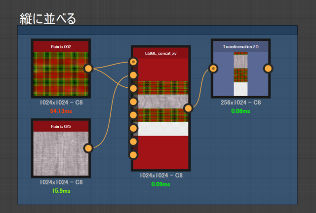 別のいくるかの取り組みで、ただ画像を左右または上下に連結したかったのだが、タイル系とかスキャッター系とかアトラス系のノードで簡単に望んだ感じにできるものが見つからなかったので、作った。ピクセルプロセッサ作例。自分が欲しいノードは自分で作る。(たまに車輪の再発明してしまうが。)