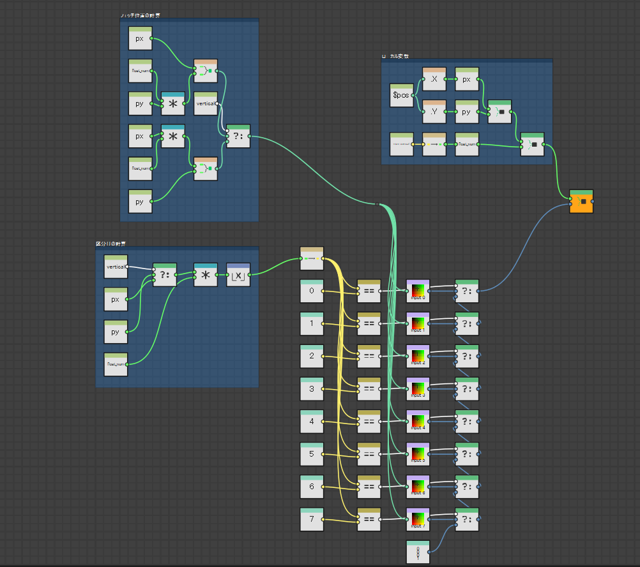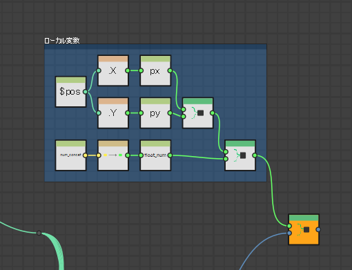 よく使う計算結果はローカル変数を用意して、ノードグラフに広い範囲のコネクションがあっちこっちと伸びないようにしている。ローカル変数便利。