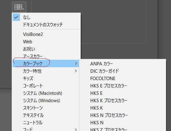 前回の記事の手順で、任意のPANTONEカラーセットを開いておく。