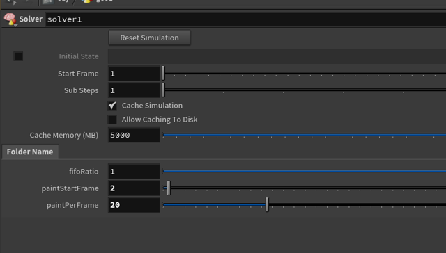 }先の動画では初期値として点を打つだけだが、後追いで任意のタイミングで点を打ってもそこからペイントが発展するようにしてある。i@fillIndexはペイントの優先順位(値が大きいほうが強い)になるので、点を打ったフレーム番号を(浮動小数点フレーム番号をintとして)入力としている。塗りたい色はv@fillColorに設定する。あとはソルバ処理に任せている。
