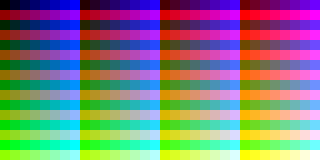 RGBを3ビット(8段階)から選択する。もしくはallチェックボックスをONにして全色一覧モードにする。