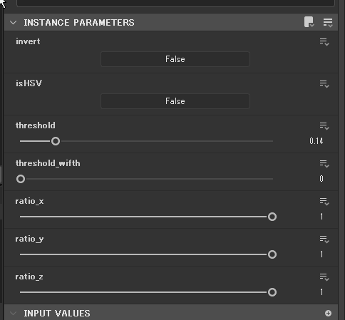 各要素xyzはRとGとBもしくはHとSとVを示し、0にするとその要素は色の近さの計算に扱われなくなる。たとえばHSVモードでHとSを0にすると、V(輝度)の近さだけでマスクが生成されることになる。