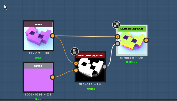 LGML_mask_by_color.sbsに含まれるテスト&デモ用のグラフで下記の投稿で述べた自作ノード(LGML_hsl_adjuster.sbsar)を使って依存している。LGML_mask_by_color.sbsar自体は他自作ノードへ依存はない。
